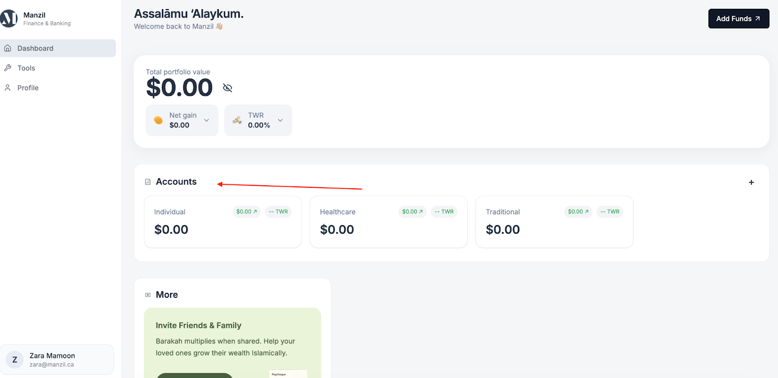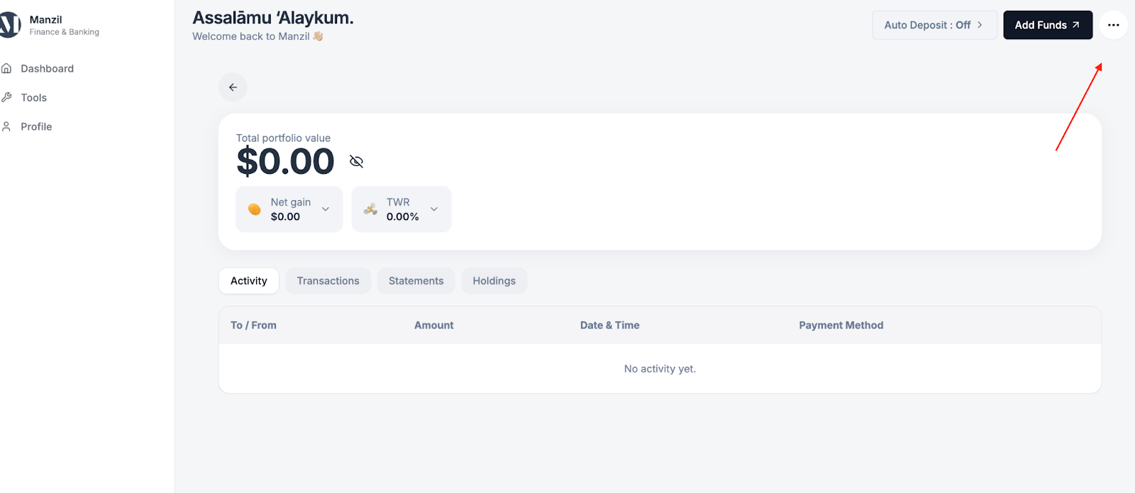 - Navigate to “Dashboard": Select the specific Account you wish to pull money from